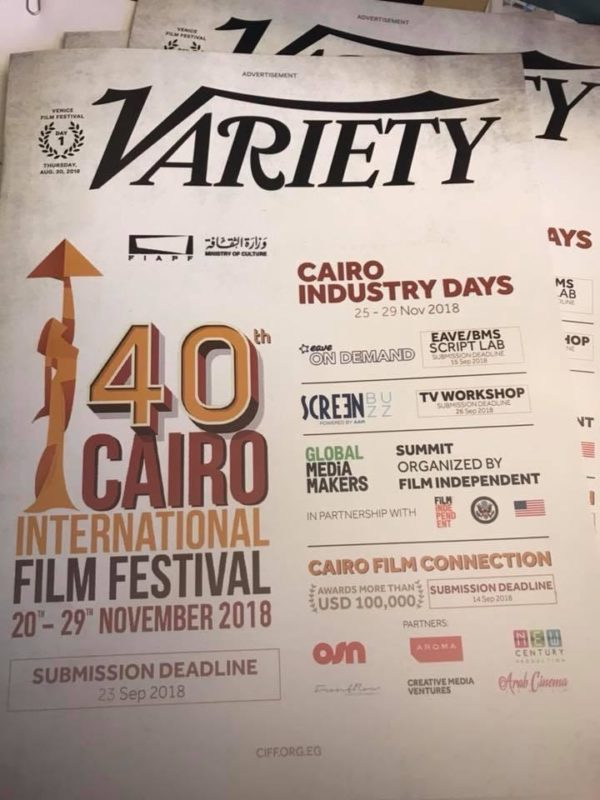 تصدر شعار الدورة الـ 40 لمهرجان القاهرة السينمائي الدولي، غلاف مجلة “فارايتي” الأمريكية، التي تعد أحد أهم الإصدارات السينمائية العالمية المتخصصة، وذلك خلال فعاليات اليوم الأول للدورة 75 بمهرجان فينيسيا السينمائي الدولي.